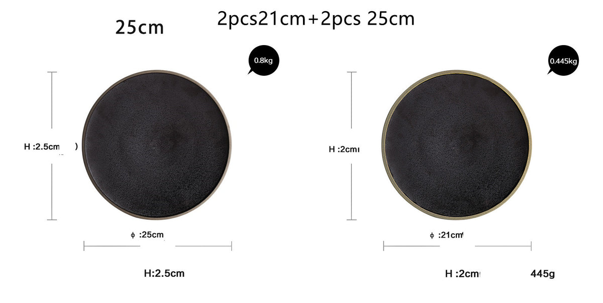 Black crystal large plate ceramic plate home dessert plate round flat plate - Largel cap 25CM