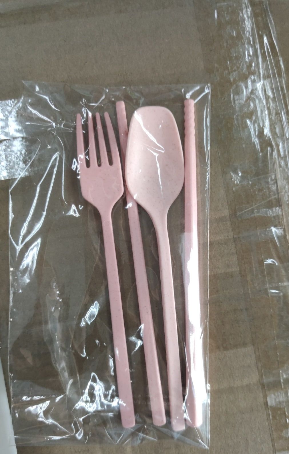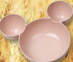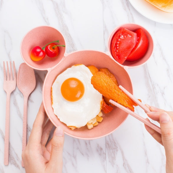 Wheat Straw, Children's Bowl, Cartoon, Wheat Chopsticks, Fork Spoon, Fruit Dish, Mickey's Bowl, Lovely Gift Set - Pink 3PC