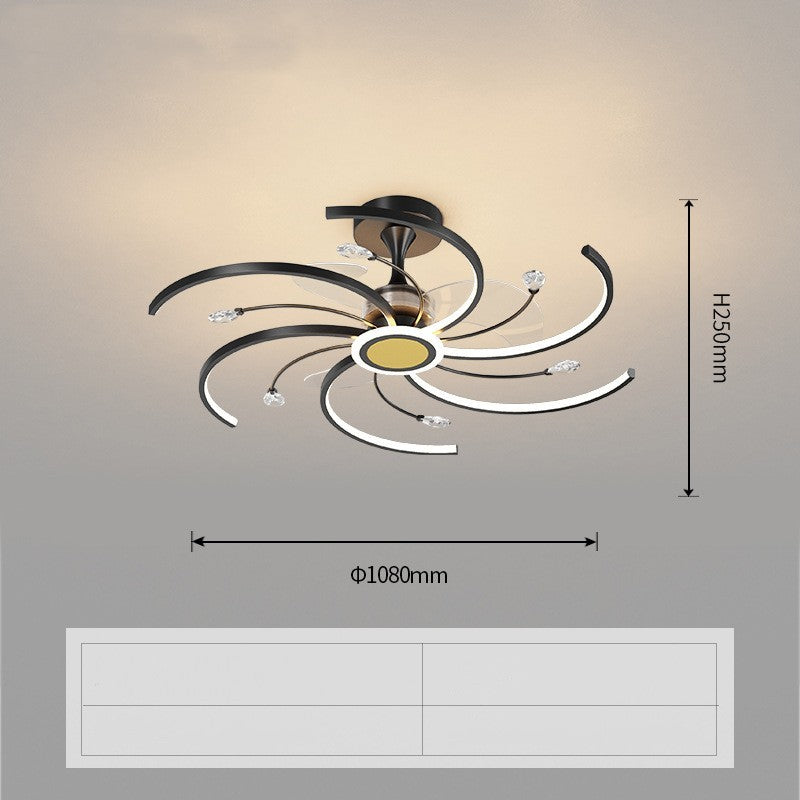 Modern Simple Fan Lamp In Living Room - Black gold4 head 68CM / Stepless dimming