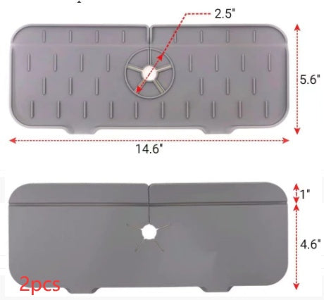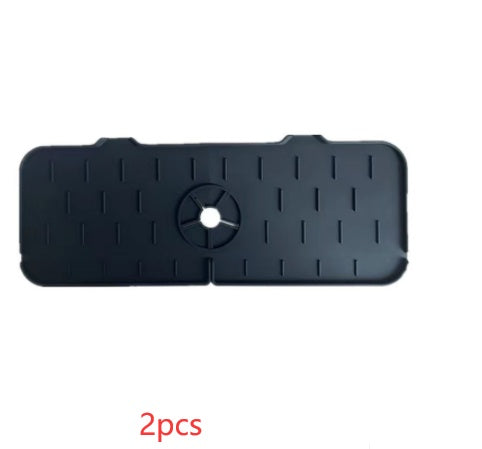 Kitchen Silicone Faucet Absorbent Mat Sink Splash Guard Silicone Faucet Splash Catcher Countertop Protector For Bathroom Kitchen Gadgets - Black / 37x14x0.5 / 1PC
